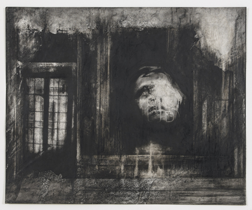 Sumi ink, crayon, collage on paper